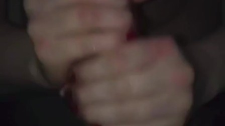 Sexy MILF answers door in bra and panties and gives delivery boy handjob for a tip