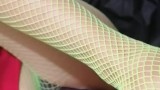 Stuzzico il mio fan con i piedi e le calze a rete