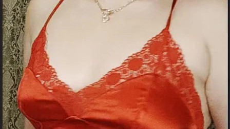 juicy redhead in a red dress