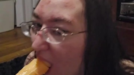 Brunette BBW works on some throat training