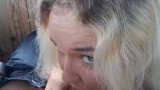 Unplanned public blowjob on a forest viewing deck, ending with a huge facial amid yellow blooms