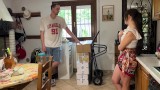 Moglie infedele bruna tradisce il marito e scopa duro con il ragazzo dei traslochi-Dialoghi Italiano