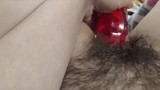 Трахает себя большой бутилкой из под шампуня