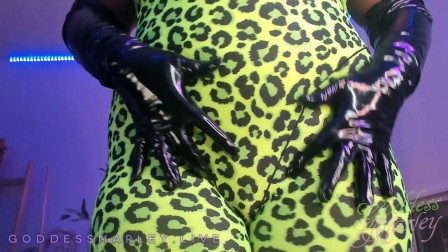 Ebony Goddess Teases Her Curves In Black PVC Gloves and Spandex