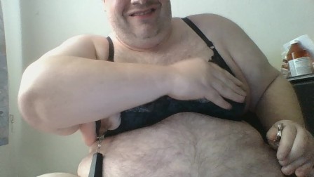 Gewichte an meinen Nippeln im Schwarzen Loch-BH