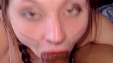 Freaky Kitty Cat Slut Deepthroating Fan’s Thick Cock After Halloween Party