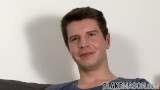 Interviewed stud David Moran strokes his cock and cums