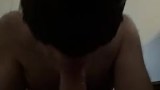 Deep throat training on realistic dildo