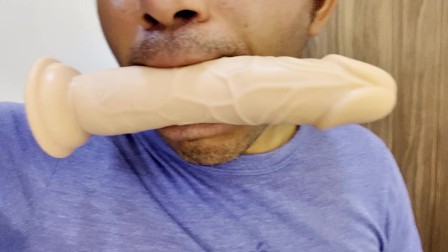 Jerking off while giving head to my new dildo, blowjob to dildo