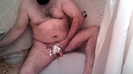 Me afeito la polla y los huevos mientras me pajeo-I shave my hairy dick and balls while masturbating