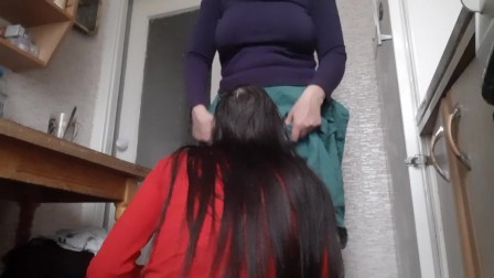 We are in the kitchen taking turns licking each other's pussies under skirts - IkaSmokS