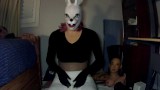Bunny May Pt1! Female masked girl plays around with her white rabbit mask and her rubber body!