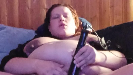 BBW wife masturbating while I sit off to the side and watch